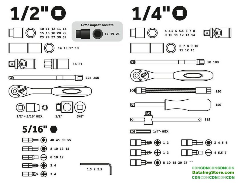 универсальный набор, 1/4", 1/2", 28 предметов