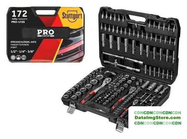 | Комплектация | Головка торцевая 1/4": 4, 4.5, 5, 5.5, 6, 7, 8, 9, 10, 11, 12, 13, 14 мм;Головка торцевая глубокая 1/4": 4, 5, 6, 7, 8, 9, 10 мм;Головка торцевая 1/4": E4, E5, E6, E7, E8;Головка с насадкой HEX 1/4": H3, H4, H5, H6;Головка с насадкой TORX 1/4": T8, T9, T10, T15, T20, T25, T27, T30;Головка с насадкой TAMPER TORX 1/4": TT8, TT9, TT10, TT15, TT20, TT25, TT27, TT30;Головка с насадкой SL 1/4": SL4.5, SL5, SL6.5, SL7;Головка с насадкой PH 1/4": PH0, PH1, PH2;Головка с насадкой PZ 1/4": PZ0, PZ1, PZ2;Головка торцевая 3/8": 10, 11, 12, 13, 14, 15, 16, 17, 18, 19 мм;Головка торцевая глубокая 3/8": 10, 11, 12, 13, 14, 15 мм;Головка торцевая 3/8": E10, E11, E12, E14, E16, E18;Свечная головка 3/8": 18 мм;Головка торцевая 1/2": 10, 11, 12, 13, 14, 15, 16, 17, 18, 19, 20, 21, 22, 24, 27, 30, 32 мм;Головка торцевая глубокая 1/2": 16, 17, 18, 19, 22 мм;Головка торцевая 1/2": E20, E24;Свечная головка 1/2": 16, 21 мм;Насадка 1/4" HEX: H4, H5, H6;Насадка 1/4" TORX: T10, T15, T20, T25, T27, T30;Насадка 1/4" SL: SL4, SL5, SL6;Насадка 1/4" PH: PH0, PH1, PH2, PH3;Насадка 1/4" PZ: PH0, PZ1, PZ2, PH3;Насадка 5/16" HEX: H7, H8, H10, H12, H14;Насадка 5/16" TORX: T40, T45, T50, T55, T60, T70;Насадка 5/16" TAMPER TORX: TT40, TT45, TT50, TT55, TT60, TT70;Насадка 5/16" SL: SL8, SL10, SL12;Насадка 5/16" PH: PH3, PH4;Насадка 5/16" PZ: PZ3, PZ4;Трещотка 1/4";Переходник (держатель для бит) 1/4"х1/4"(HEX);Удлинитель 1/4" 50 мм;Удлинитель 1/4" 100 мм;Кардан 1/4";Вороток-отвертка 1/4" 150 мм;Вороток 1/4" с плавающей головкой 115 мм;Трещотка 3/8";Переходник (держатель для бит) 3/8"х5/16"(HEX);Удлинитель 3/8" 150 мм;Кардан 3/8";Трещотка 1/2";Переходник (держатель для бит) 1/2"х5/16"(HEX);Переходник 3/8"(F)х1/2"(М) с отверстием;Удлинитель 1/2" 125 мм;Удлинитель 1/2" 250 мм;Кардан 1/2";Ключ шестигранный Г-обр.: 1.27, 1.5, 2, 2.5, 3, 4, 5 мм;Кейс |