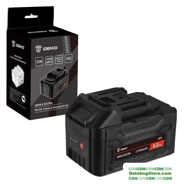 Li-ion, для строительного инструмента, совместим с Deko, 20 В, 6 А·ч, с индикатором заряда, 1 аккумулятор в наборе, 950 г