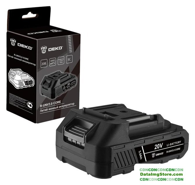 Li-ion, для строительного инструмента, совместим с Deko, 20 В, 3 А·ч, с индикатором заряда, 1 аккумулятор в наборе, 350 г