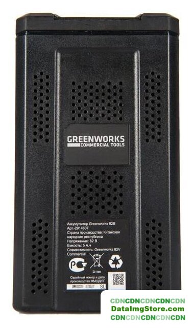 Комплектация | Аккумулятор GreenWorks 82V, 5 А/ч, арт. 2914607 (модель G82B5);Руководство по эксплуатации;Гарантийный талон. |