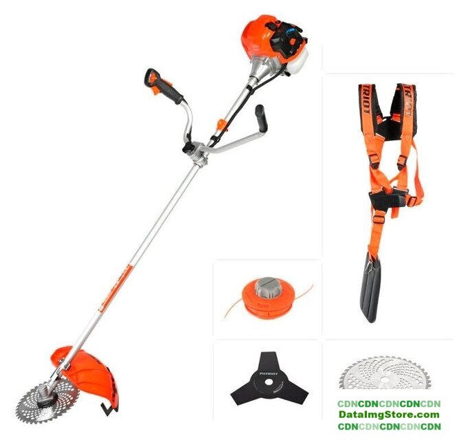 бензиновый, 1500 Вт, оснастка: металлический нож+металлический диск+леска, ширина скашивания 255-430 см, вес 7.6 кг