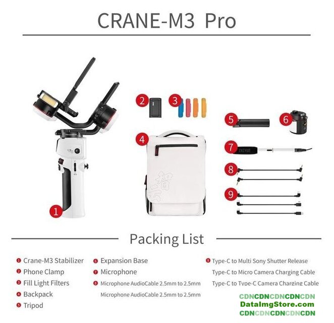 | Комплектация | - быстросъемная площадка- база-опора- микрофон-пушка- адаптер для подключения микрофона и дополнительных аксессуаров- аудиокабель 2.5 мм - 2.5 мм- кабель для зарядки (USB Type-C - USB Type-A)- кабель для управления камерами (Type-C - USB Type-C)- кабель для управления камерами (USB Type-C - microUSB)- кабель для управления камерами (USB Type-C - Sony Multi)- держатель для смартфона- набор цветных светофильтров- кейс для переноски- рюкзак для переноски- документация |