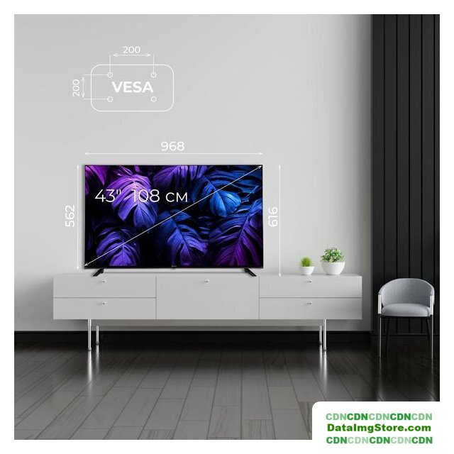 43" 3840x2160 (4K UHD), матрица VA, частота матрицы 60 Гц, Smart TV (Android TV), Wi-Fi