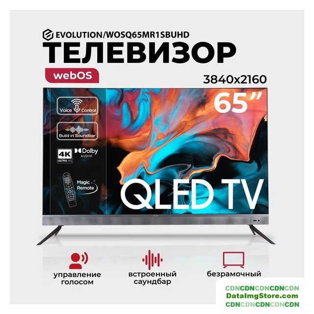 65" 3840x2160 (4K UHD), матрица VA, частота матрицы 60 Гц, Smart TV (Android), HDR10, HDR10+, Dolby Vision, Dolby Atmos, Wi-Fi, смарт пульт