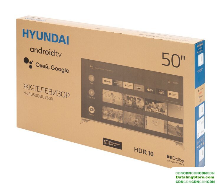 50" 3840x2160 (4K UHD), частота матрицы 60 Гц, Smart TV (Android TV), HDR10, HLG, DTS:HD, DTS:X, Wi-Fi, смарт пульт