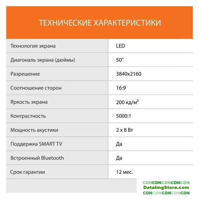 50" 3840x2160 (4K UHD), частота матрицы 60 Гц, Smart TV (Android TV), Wi-Fi, смарт пульт
