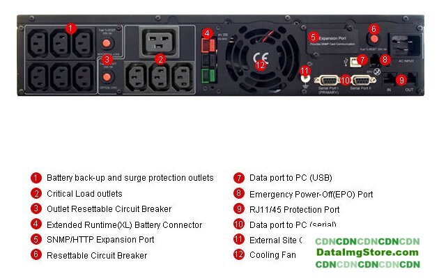 1980 Вт, 9 розеток IEC320-C13/IEC320-C19, время автономного питания: до 9 мин (8 мин 42 с при 100% нагрузке)