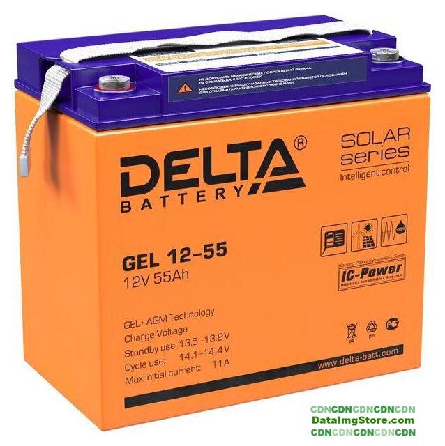 AGM, 12 В, 55 А·ч, макс. ток 550 А, клеммы М6, 229x138x208 мм, 16 кг, срок службы: 6 лет
