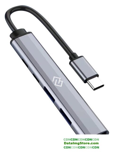 USB Type-A 3.2 Gen1 (5 Гбит/с), 4 порта, пассивное питание, кабель 0.2 м, цвет серый