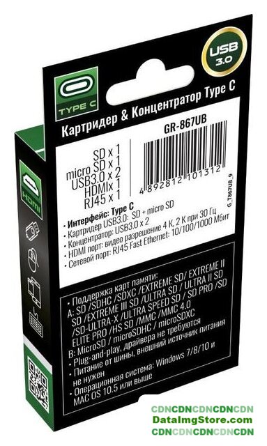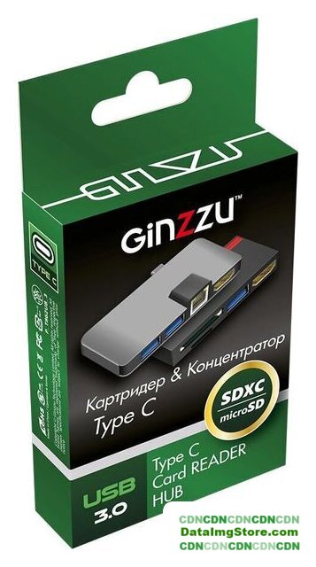 USB Type-A 3.2 Gen1 (5 Гбит/с)/HDMI, 3 порта, пассивное питание, картридер SD/SDHC/SDXC/microSD/microSDHC/microSDXC/MMC, цвет серый