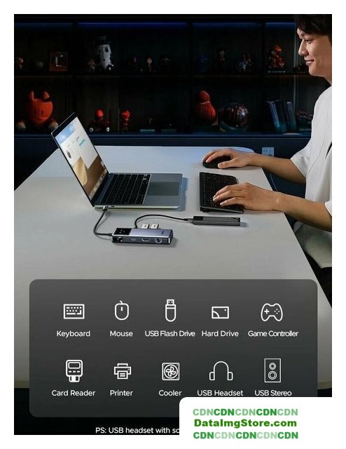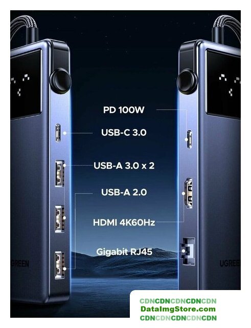 подключение по USB-C, 4 x USB-A, 1 x USB-C, видео до 4K 60 Гц, питание USB-C PD до 100 Вт, LAN-адаптер 1000 Мбит/с, кардридер, корпус металл