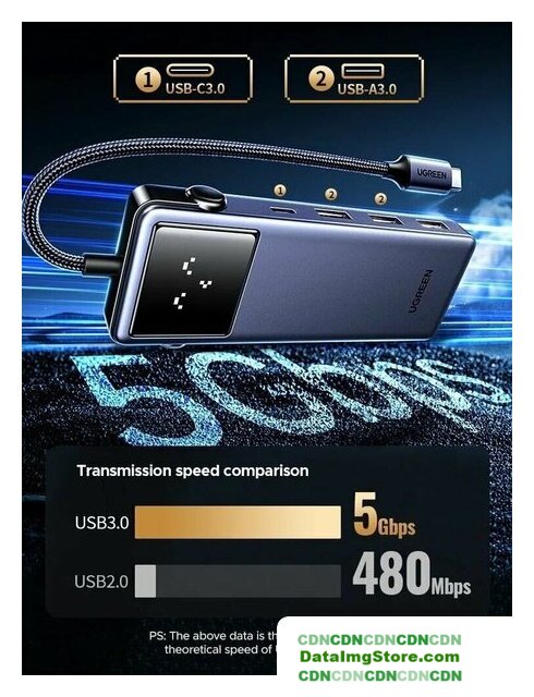 USB Type-A 3.2 Gen1 (5 Гбит/с)/USB Type-C/HDMI, 3 порта, 2 - USB Type A; 1 - USB Type C., пассивное питание, картридер SD/SDHC/SDXC/microSD/microSDHC/microSDXC, кабель 0.2 м, цвет черный