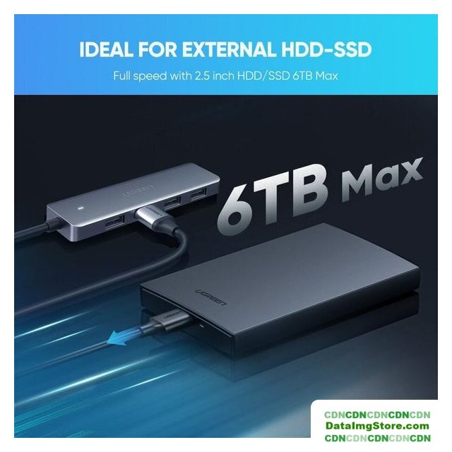 USB 3.0, 4 порта, комбинированное питание, кабель 0.5 м, цвет черный