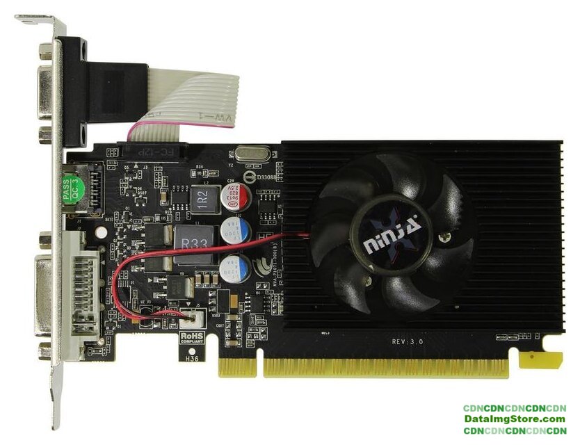 1 ГБ GDDR3, 625 МГц, 48sp, 128 бит, 1 слот, питание нет, HDMI, VGA, DVI