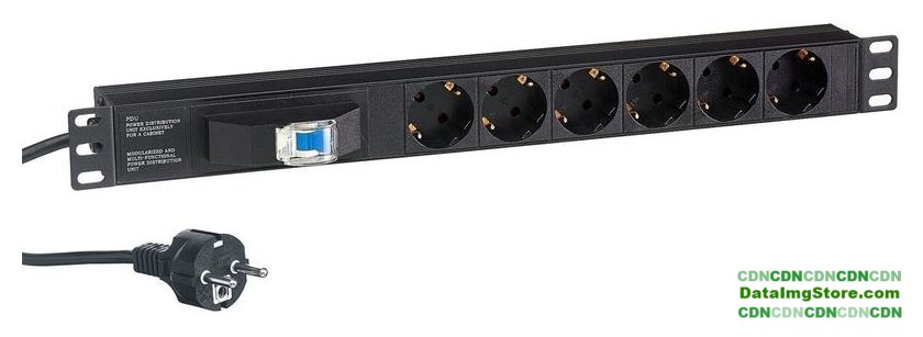 блок розеток, 6 розеток Schuko (евро с заземлением)