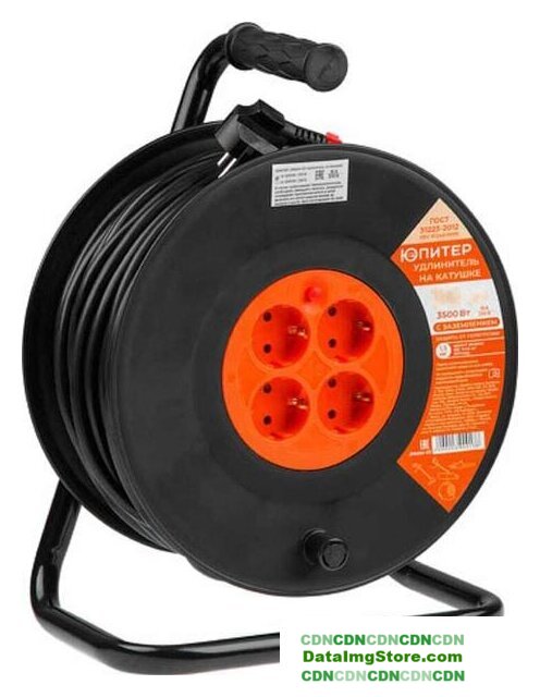 удлинитель на катушке, кабель 40 м, 4 розетки Schuko (евро без заземления) / 3500 Вт