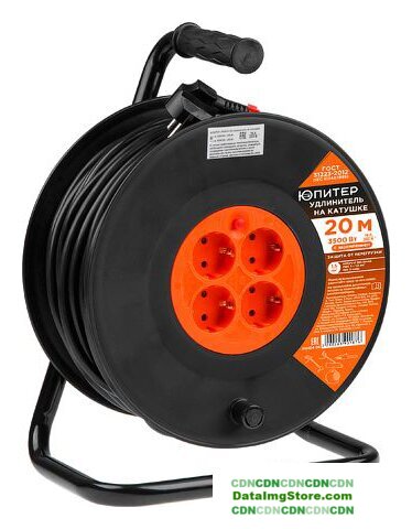 удлинитель на катушке, кабель 50 м, 4 розетки Schuko (евро с заземлением) / 3500 Вт