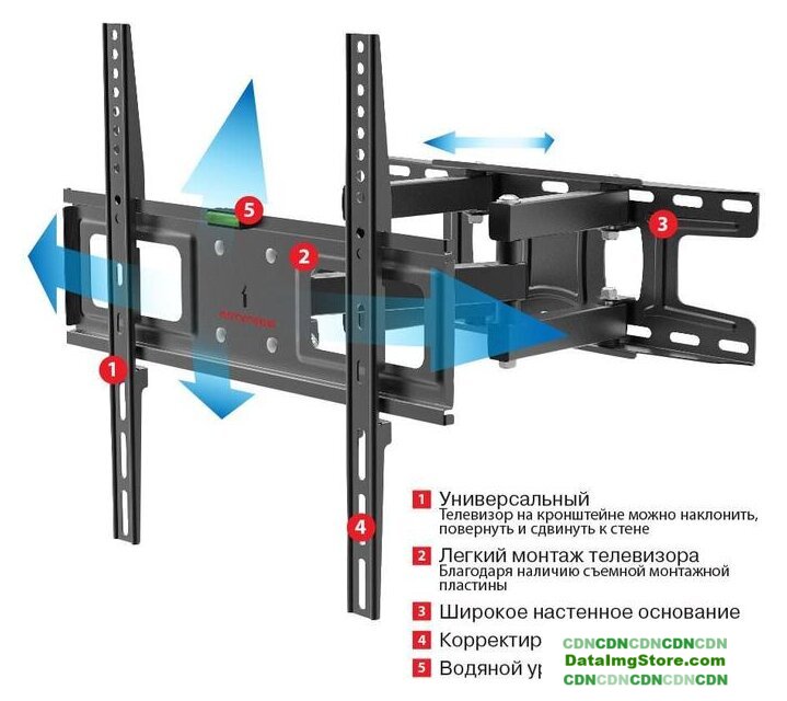 настенный кронштейн для ЖК-телевизора 32-55", наклон 15°, поворот 90°, цвет черный