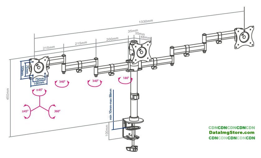 | Максимальная нагрузка | 30 кг (по 10 на каждый монитор) |