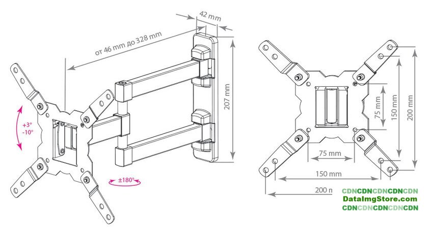 | Расстояние от стены (потолка) | 46 — 328 мм |