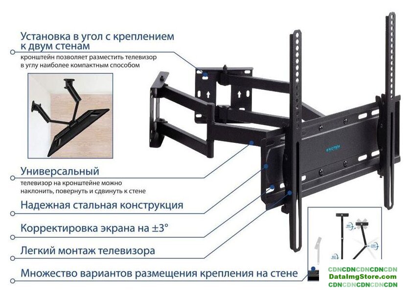 настенный кронштейн для ЖК-телевизора/для плазменного телевизора 15-55", наклон 15°, поворот 180°, цвет черный/белый