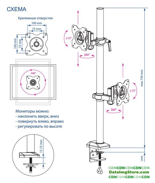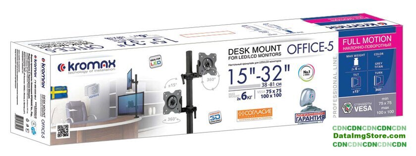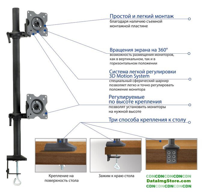 настольный кронштейн для ЖК-монитора 10-32", наклон 90°, поворот 360°, цвет черный