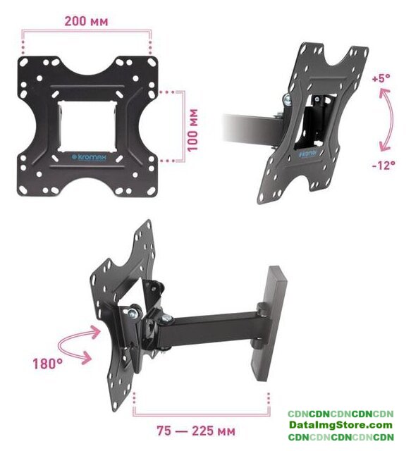 настенный кронштейн для ЖК-телевизора 32-55", наклон 12°, поворот 12°, цвет черный