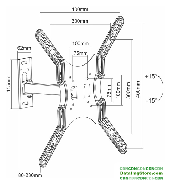 для ЖК-телевизоров, 32-65", настенный, поворотный, наклон 17°, поворот 180°, цвет черный