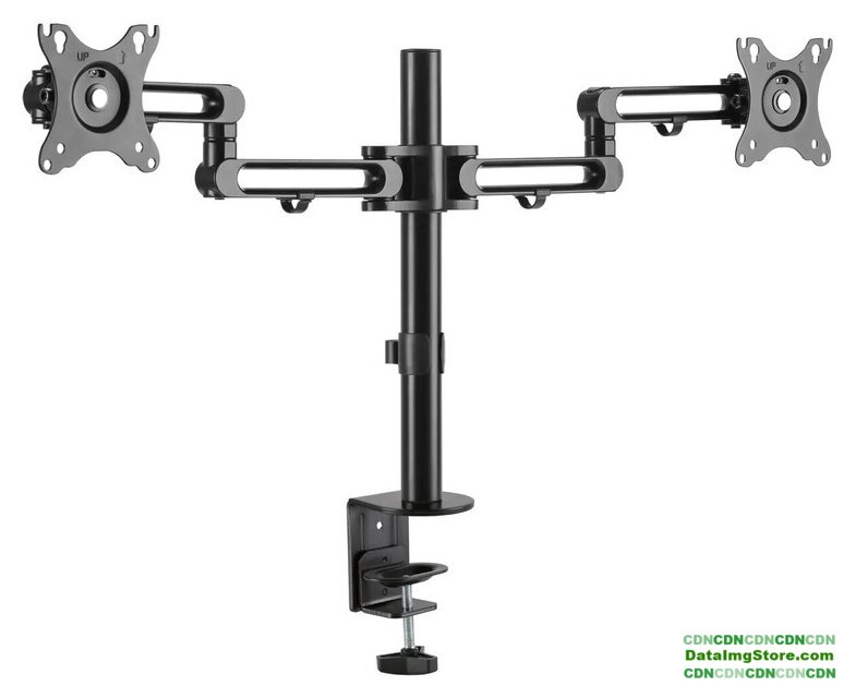 для мониторов, 17-27", 2 монитора, настенный, поворотный, с регулировкой высоты, кабель-канал, наклон 45°, поворот 180°, цвет черный