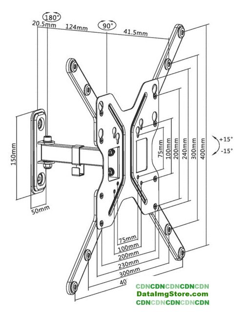 настенный кронштейн для ЖК-телевизора 24-55", наклон 15°, поворот 180°, цвет черный