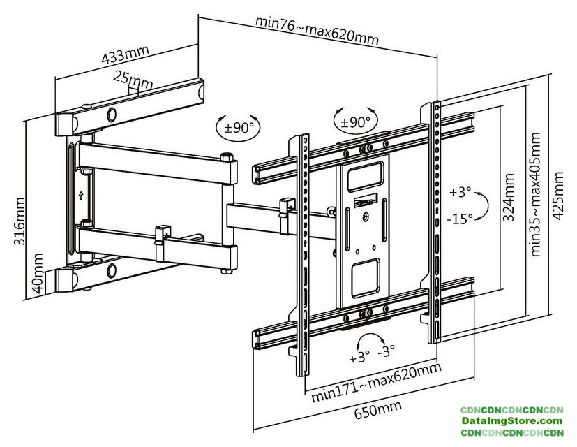 Расстояние от стены (потолка) | 76 — 620 мм |