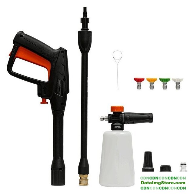 | Комплектация | • мойка, • шланг высокого давления, • пистолет, • трубка струйная с быстросьемным коннектором, • 4 быстросьемных сопла, • турбо насадка, • пеногенератор с регулировкой, • быстросьем для шланга, • входной фильтр, • игла для прочистки, • руководство по эксплуатации, • гарантийный талон |