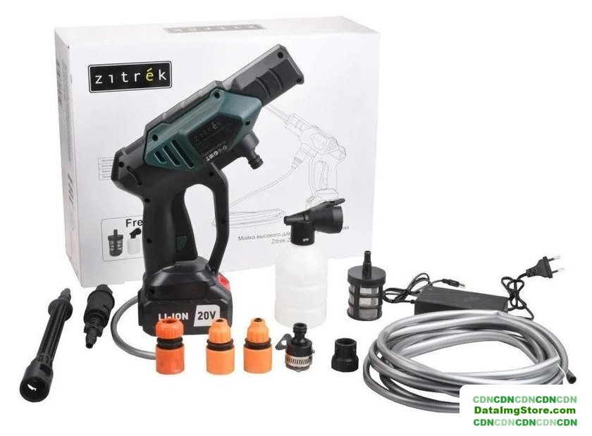 | Комплектация | - Мойка;- Шланг;- Штанга;- Аккумулятор 4 Ач;- Емкость для моющего средства;- Фильтр;- Коннектор для шланга;- Насадка;- Быстроразъемный соединитель;- Штуцер для садового полива;- Руководство по эксплуатации. |