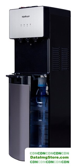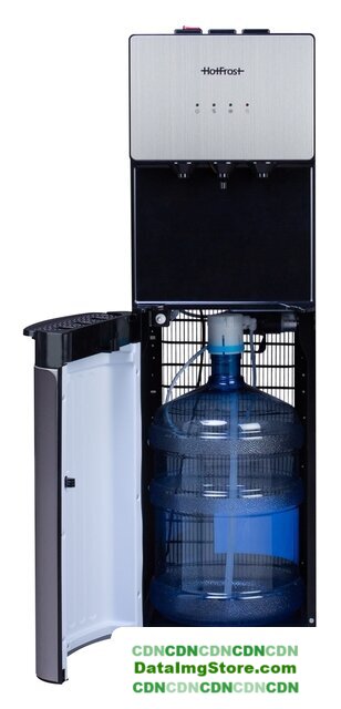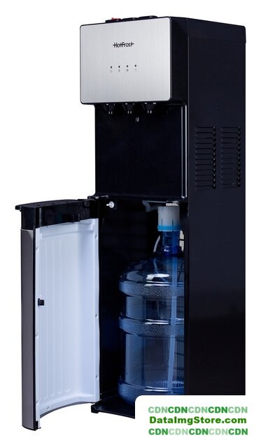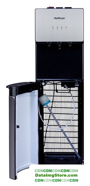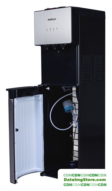 напольный, компрессорное охлаждение, нагрев, бутыль сверху, кран: клавиша, встроенный холодильник