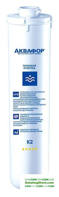 | Описание фильтра | Сменный модуль для глубокой очистки воды. Используется в системах АКВАФОР с отдельным краном. Удаляет вредные примеси, в т.ч. взвеси, хлор, тяжелые металлы и органические вещества. Картридж заменяется вместе с корпусом для бактериостатичности. |