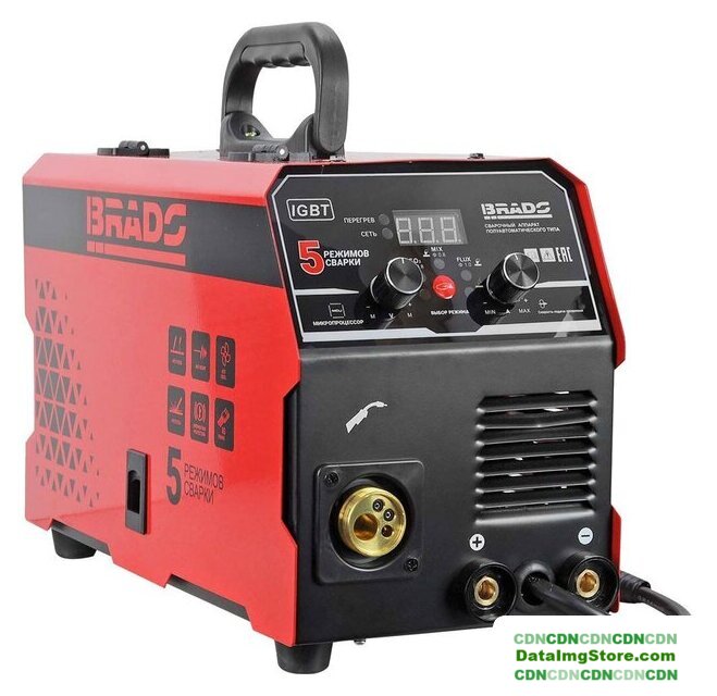 полуавтоматическая сварка (MIG MAG FCAW), входное напряжение 220 В, сварочный ток: 20-250 А, 4.6 кг