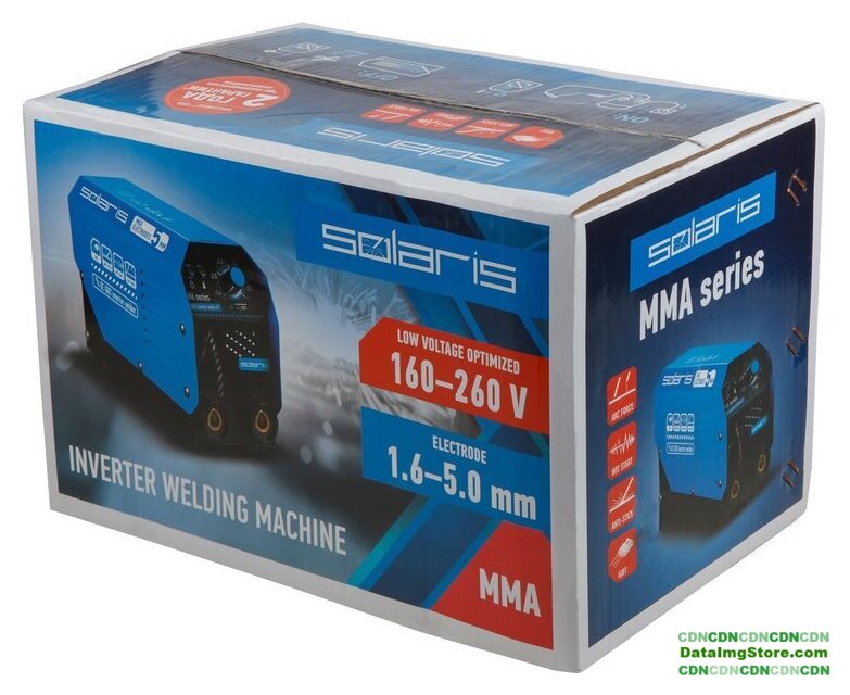 ручная дуговая сварка (MMA), входное напряжение 220–240 В, сварочный ток: 15-160 А, диаметр электрода: 1.6–3.2 мм