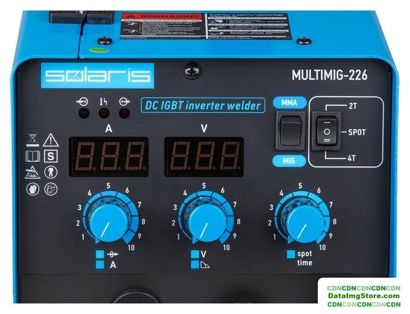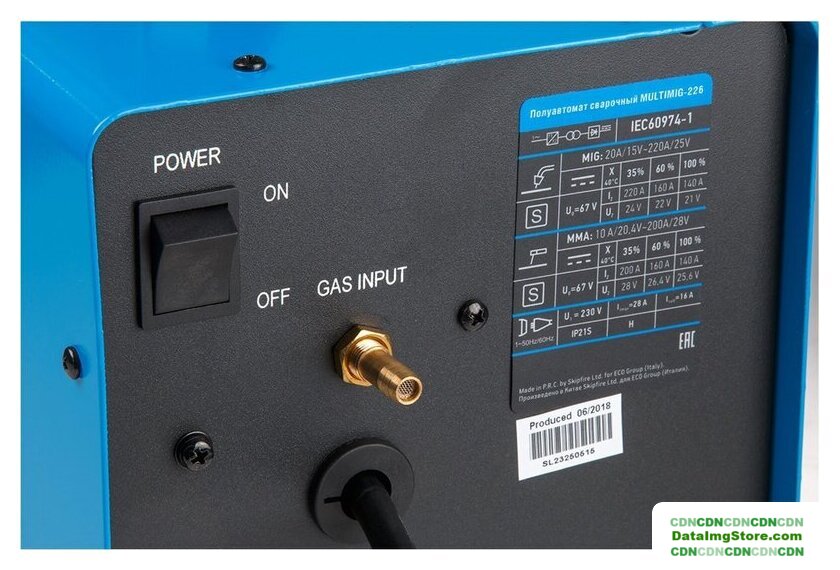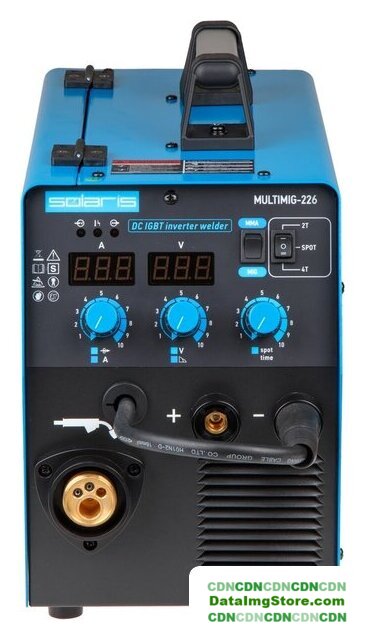 ручная дуговая сварка (MMA)/полуавтоматическая сварка (MIG MAG), входное напряжение 195–245 В, сварочный ток: 50–210 А, диаметр электрода: 2–4 мм