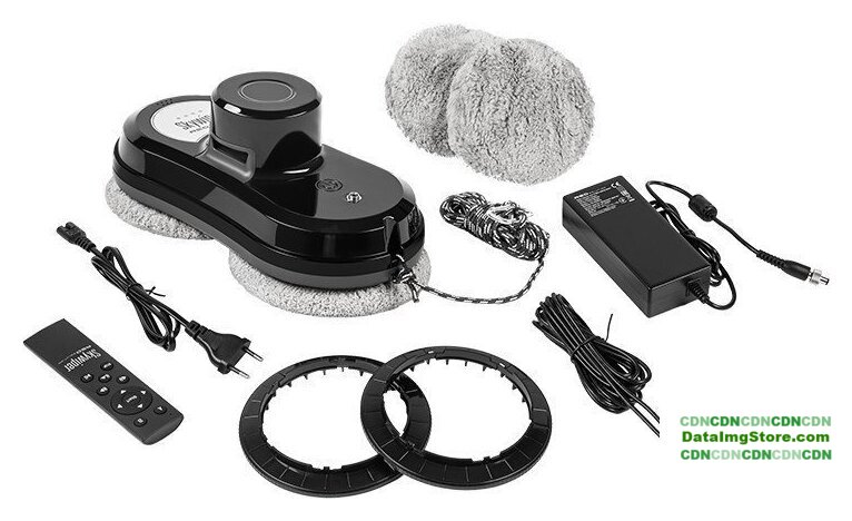 | Комплектация | робот-мойщик окон, сетевой адаптер, сетевой шнур, удлинитель сетевого шнура, пульт дистанционного управления, элемент питания R03 (AAA), съемные кольца для мопов, мопы из микрофибры, страховочный трос с карабином, руководство по эксплуатации, сервисная книжка |