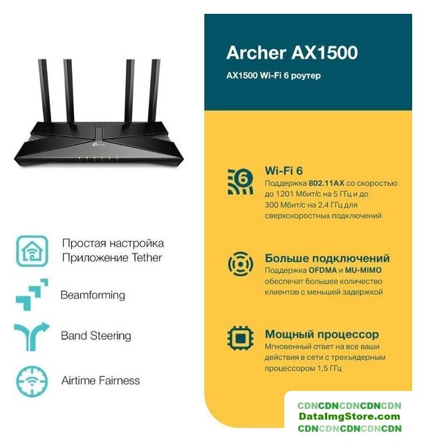| Комплектация | Wi-Fi роутер Archer AX1500Адаптер питанияКабель Ethernet RJ45Руководство по быстрой настройке |