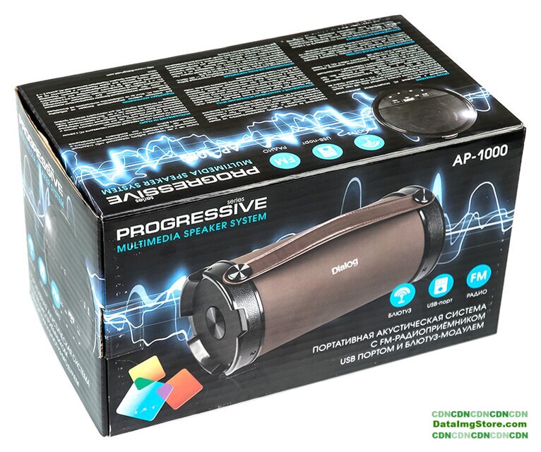 номинальная мощность 12 Вт, воспроизведение с USB/microSD, питание от аккумулятора, BT 5.3, AUX, время работы: 4 ч.