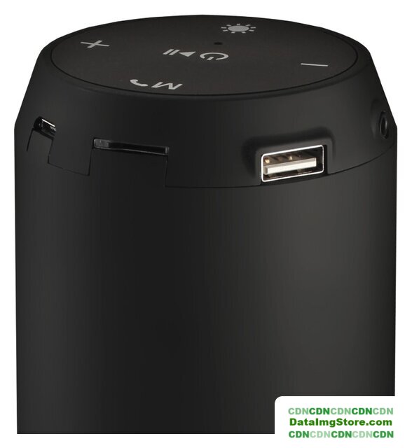 номинальная мощность 16 Вт, воспроизведение с microSD, питание от аккумулятора, BT, AUX, влагозащита IPX6