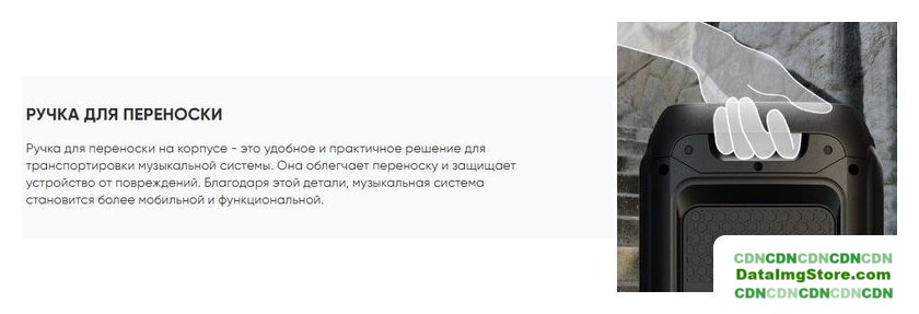 номинальная мощность 75 Вт, воспроизведение с USB/microSD, питание от сети и аккумулятора, BT 5.0, AUX, время работы: 7 ч.