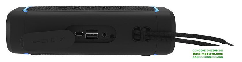 номинальная мощность 5 Вт, воспроизведение с USB/microSD, питание от аккумулятора, BT 5.2, AUX, влагозащита IPX4, время работы: 4 ч.