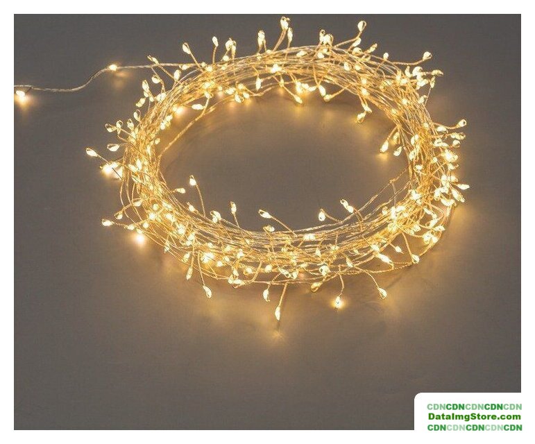 гирлянда, для использования в помещении/на улице, длина 10 м, 100 ламп, питание от сети, свечение мерцающее, IP65, провод белый резиновый